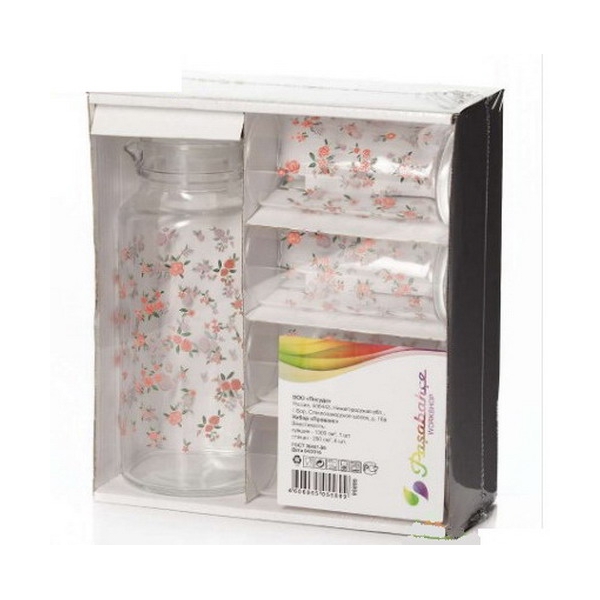 Набор для сока Прованс (кувшин+4 стакана) - это питьевой набор, украшенный нежным цветочным узором, легко впишется в интерьер современной кухни.