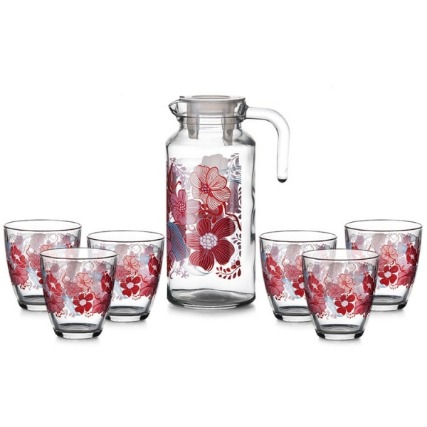 Набор "Ред дрим" (кувшин + 6 стаканов). Питьевой набор, украшенный нежным цветочным узором, легко впишется в интерьер современной кухни. Практичный питьевой набор для повседневного использования и отличный вариант для подарка.
