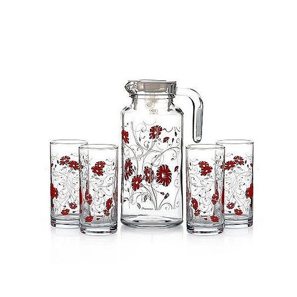 Набор "Ред серенейд" (кувшин+4 стакана). Питьевой набор, украшенный нежным цветочным узором, легко впишется в интерьер современной кухни. Практичный питьевой набор для повседневного использования и отличный вариант для подарка.