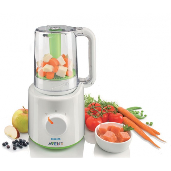С помощью Philips Avent, совмещающего в себе функции пароварки и блендера, вы всегда можете приготовить здоровую домашнюю еду для вашего малыша: отварные фрукты, овощи, рыбу или мясо а затем просто перевернуть контейнер, чтобы смешать еду, не перекладывая!