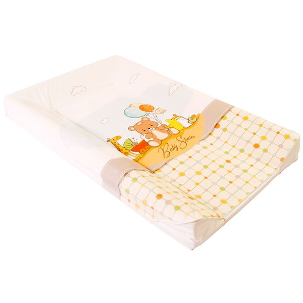 - Доска для пеленания выполнена на прочной основе, надежно фиксируется на кровати или комоде, не скользит.