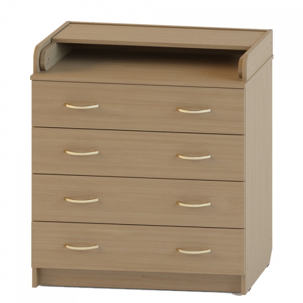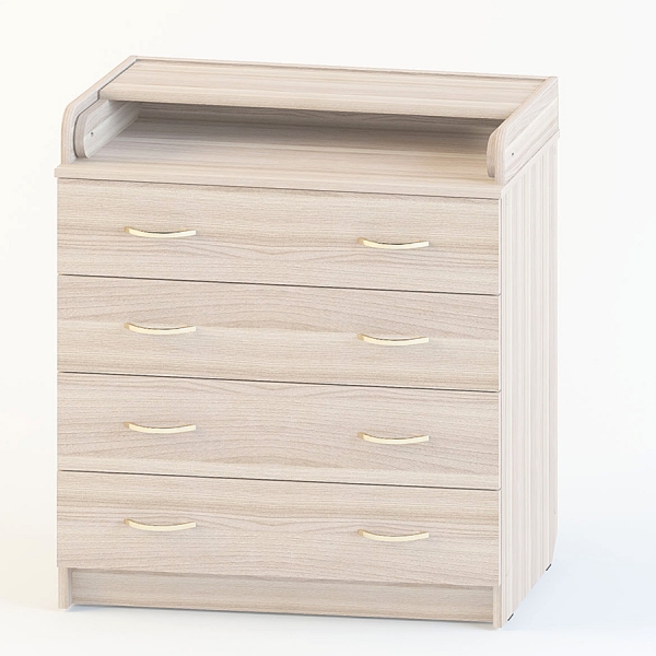 В комплектации пеленального комода 4 объемных выдвижных ящика на роликовых направляющих.