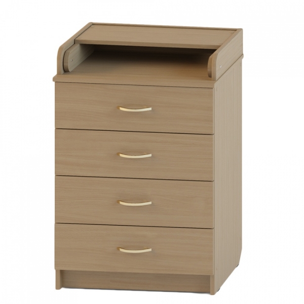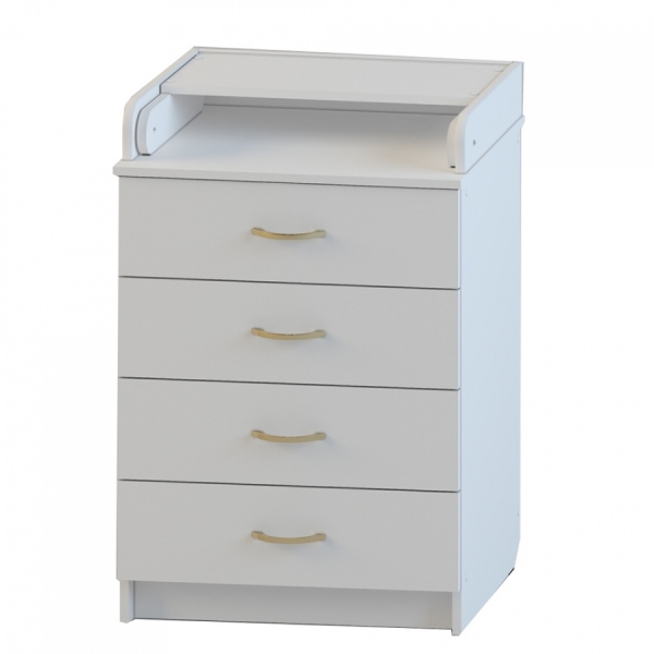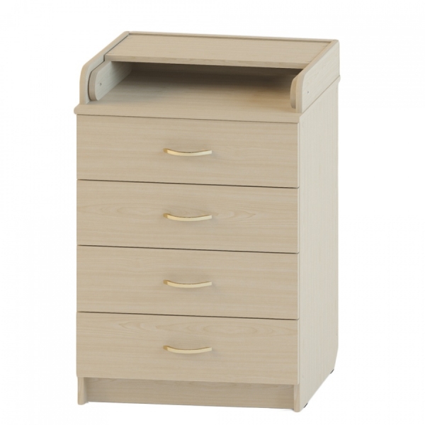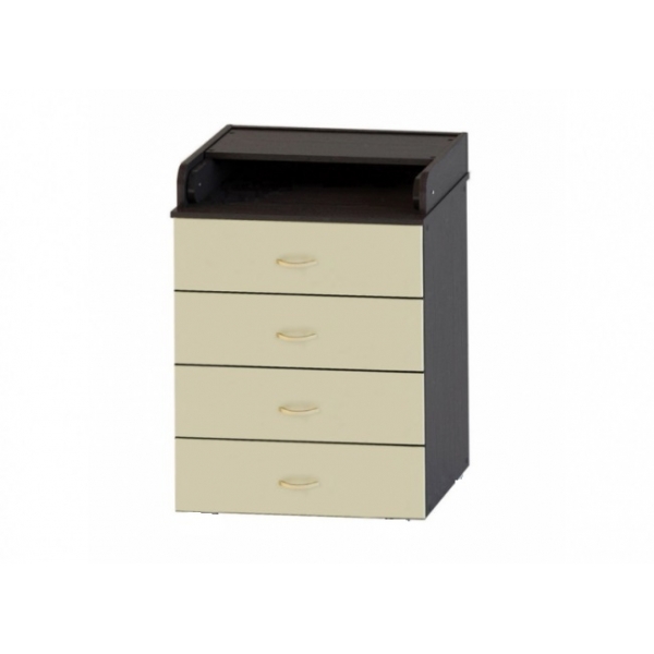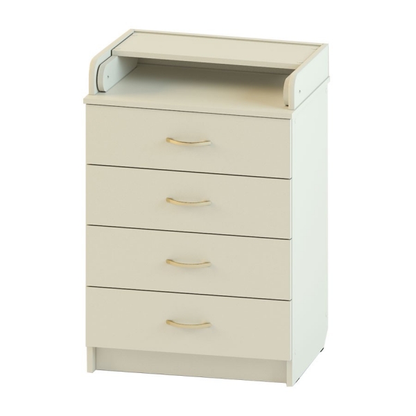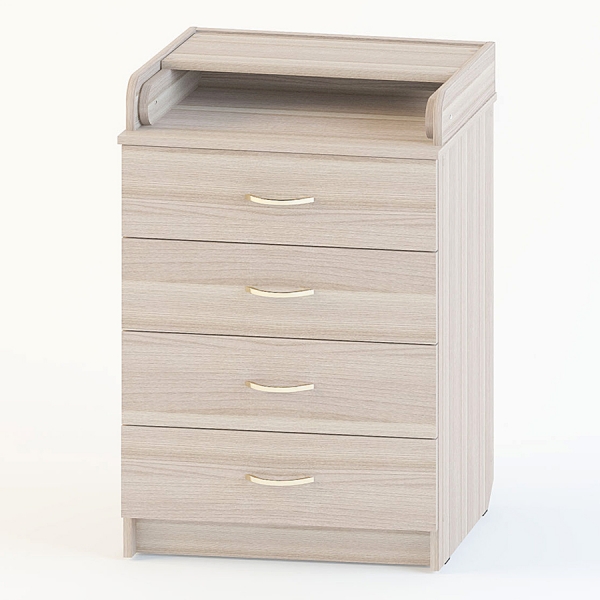Комод с пеленалым столиком оснащен четырьмя вместительными ящиками.