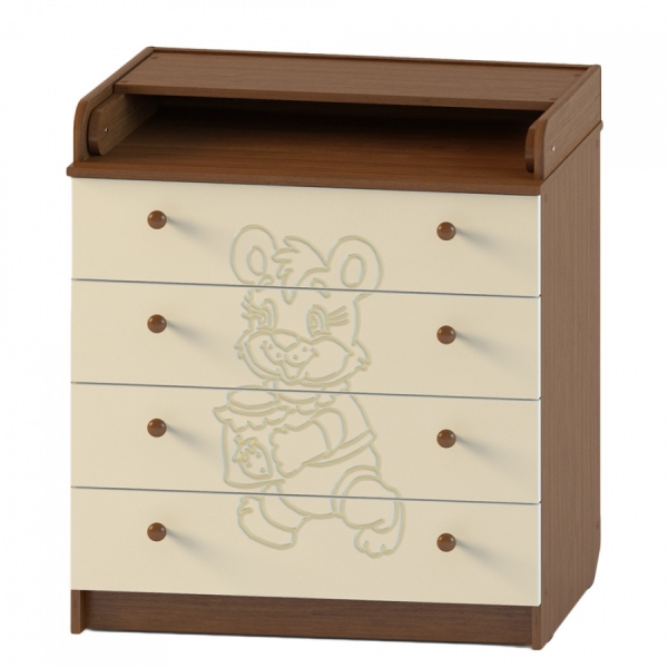 Пеленальный комод Атон Мишка с удобным пеленальным столиком, необходимым в первые месяцы жизни вашего малыша. Пеленальный столик комода откидывается, что увеличивает площадь поверхности пеленального комода.