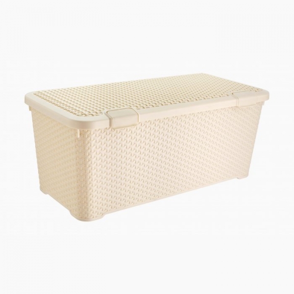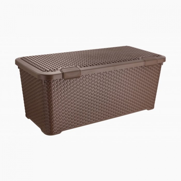 Большой пластиковый контейнер плетеный с крышкой Люкс L. Пластиковые контейнеры выполненные в оригинальном, стильном дизайнерском исполнении, призваны не только служить помощником по хозяйству, но и вносить уют и красоту в интерьер Вашего дома.