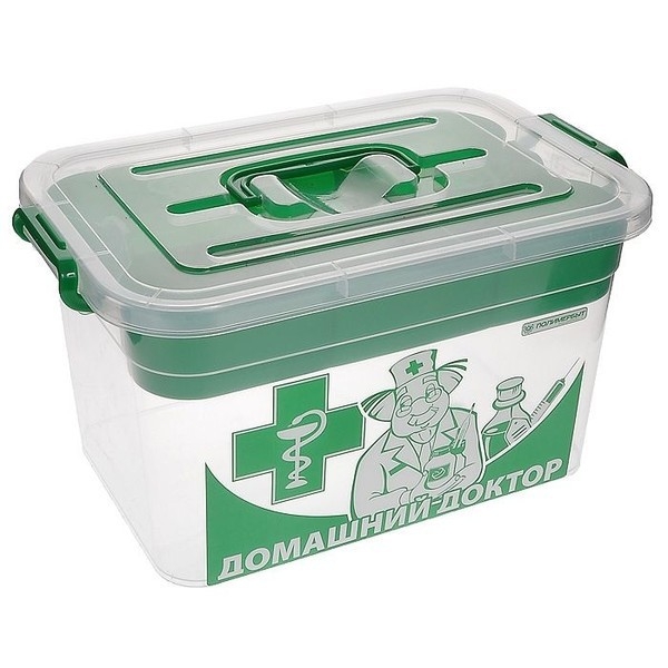 Контейнер для аптечки с вкладышем Домашний доктор 10л арт.С81003. В пластиковом контейнере «Домашний доктор», вы можете разместить лекарственные средства самым оптимальным образом, чтобы их можно было быстро найти и достать. Прочность и качество нашего контейнера станет надежным хранилищем для вашей аптечки, защитой от влаги и солнечных лучей.