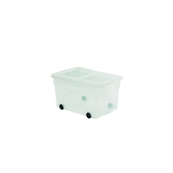 Контейнер пластиковый универсальный на колесах выполнен из экологически чистого полипропилена. Эта изящная емкость одинаково удобна для хранения как предметов быта, так и продуктов питания. Контейнер можно перекатить в наиболее подходящее место – в ванную, кухню, кладовку, на балкон. Прозрачные стенки позволяют увидеть содержимое контейнера.
