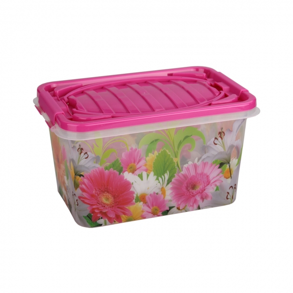 Контейнер пластиковый Глория 7л. арт.М2075 с ручками-зажимами, выполненный из высококачественного, прочного пластика, предназначенный для хранения конструкторов Лего, карандашей, игрушек и т.д. На боковинах ящика нанесена яркая аппликация в виде прекрасных цветов. Ящик имеет сглаженные углы и удобную ручку-переноску. Ребенок может как играть с ним, так и складывать туда игрушки.
