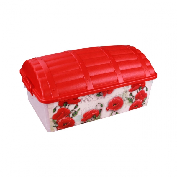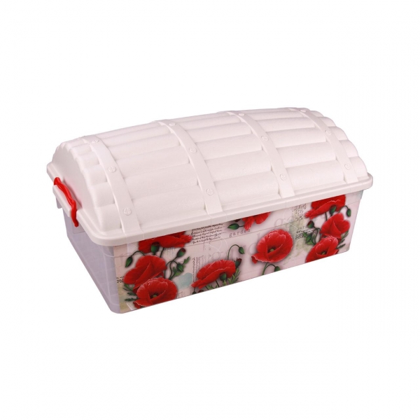 Это очень удобный контейнер, выполненный из высококачественного, прочного пластика, предназначенный для хранения карандашей, игрушек и т.д.На боковинах контейнера нанесена красивая аппликация в виде прекрасных маков. Благодаря герметичной крышке все игрушки будут защищены от пыли. Ящик имеет сглаженные углы, поэтому родители могут не беспокоиться о возможных ушибах. Ребенок может как играть с ним, так и складывать туда игрушки.