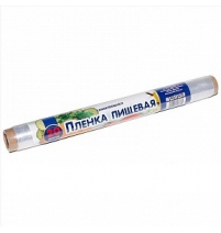 Пленка пищевая в рулоне. Размер 0,29х20 м. Широкую популярность получила пленка для упаковки разнообразных пищевых продуктов. В такую пленку часто заворачивают сыры, колбасы, фрукты, овощи, кулинарные различные изделия и много других продуктов.