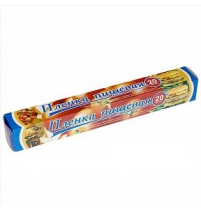 Пленка пищевая в коробке. Размер 20 м. Широкую популярность получила пленка для упаковки разнообразных пищевых продуктов. В такую пленку часто заворачивают сыры, колбасы, фрукты, овощи, кулинарные различные изделия и много других продуктов.