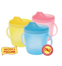 Поильник помогает ребенку научиться пить из чашки благодаря специальному носику. Прозрачные стенки позволяют легко определить количество жидкости в поильнике.