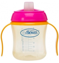 Поильник Dr.Browns с мягким носиком позволяет воздуху и жидкости взаимозамещаться, не создавая вакуум. Ребёнок пьёт естественным образом, без напряжения при сосании, поскольку встроенный клапан позволяет жидкости легко вытекать из чашки. Это делает процесс сосания похожим на питьё из открытой чашки.