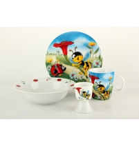 Набор детской посуды Korall "Пчела и цветок" изготовлен из высококачественного фарфора. В набор входит: тарелка, миска, кружка и подставка под яйцо.