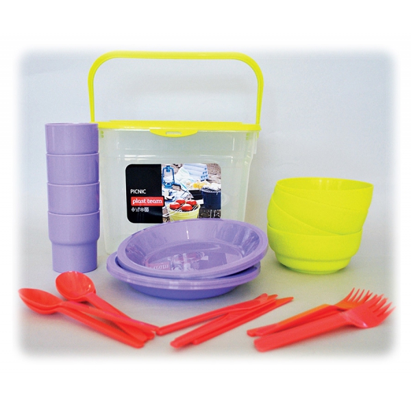 Набор для пикника на 4 персоны. Данный товар соответствует российским стандартам качества. Это уникальный товар по выгодной цене, который вы можете купить. В набор входит: ведро для шашлыка, объем: 4,5л., тарелка - 4шт., салатник - 4шт., стакан - 4шт., нож - 4шт., ложка - 4шт., вилка - 4шт.