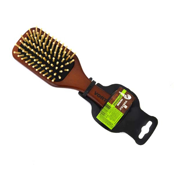 Массажная расческа "Vortex" прямоугольной формы, деревянная основа которой отполирована, идеально ухаживает за вашими волосами.