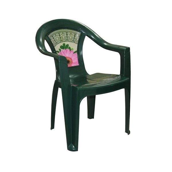 Кресло практично и удобно, прекрасно сочетается с пластиковыми столами. Его дизайн разработан таким образом, что кресло можно использовать как для кафе или бара, так и во дворе небольшого дачного домика. На спинке стула нанесен красивый цветочный рисунок.
