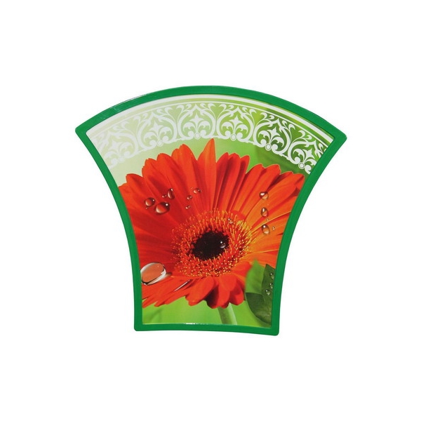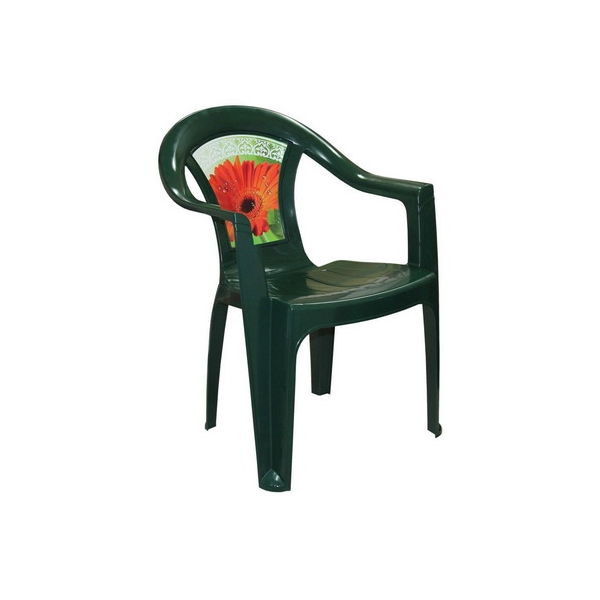 Кресло практично и удобно, прекрасно сочетается с пластиковыми столами. Его дизайн разработан таким образом, что кресло можно использовать как для кафе или бара, так и во дворе небольшого дачного домика. На спинке стула нанесен красивый рисунок в виде цветка герберы.