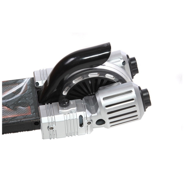 Присутствует имитация спидометра, звуковой блок с имитацией работы двигателя внутреннего сгорания, включается при повороте дроссельной заслонки, передние фары и задние фонари, имитация звуковых эффектов от тормозной системы, складной механизм. Требуется три батарейки типа ААА.
