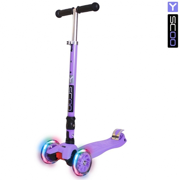 Самокат детский 3х колесный Y-Scoo 35 Maxi Fix Shine со светящимися колесами . Самокат очень легко и просто складывается простым движением- поднимая вверх черный пластиковый ободок у основания руля, легким щелчком Вы складываете ручку самоката на платформу.