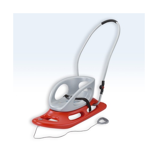 Имеется ручка для толкания санок по типу коляски, которую можно сложить при катании с горки или хранении. Сидушка имеет анатомическую форму и оснащена ремнем безопасности для фиксации ребенка.Возможно положение сиденья лицом к маме.
