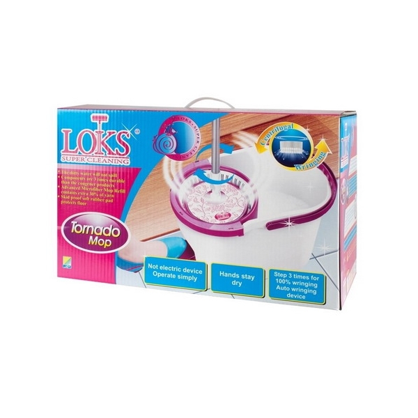 В набор «Tornado Mop» входит швабра с насадкой из микрофибры и ведро оснащенное центрифугой. Удивительно легкая и эргономичная, изготовленная из тонкого алюминиевого профиля, с меняющимся углом наклона, швабра – идеальное решение для мытья любого типа поверхности. Насадка из микрофибры обладает отличными впитывающими свойствами и вращается на 360 градусов, идеально удаляя загрязнения с любых поверхностей.
