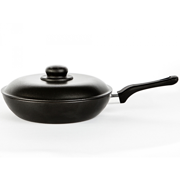 Сковорода универсальная Алена литая алюминиевая с пластиковой несьемной ручкой, утолщенным дном, крышкой и антипригарным покрытием. Небольшая сковорода Алена идеально подойдет для приготовления завтраков.