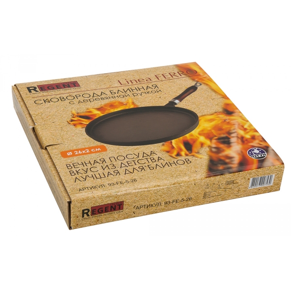 Благодаря использованию высококачественного чугуна, блинница REGENT inox FERRO рассчитана на долгие годы применения. Деревянная ручка придает изделию большую надежность. Фирменная упаковка стильно дополняет яркий образ этого изделия. Блинную скороводу можно использовать на всех плитах. Вы можете преподнести изделие в подарок друзьям и близким