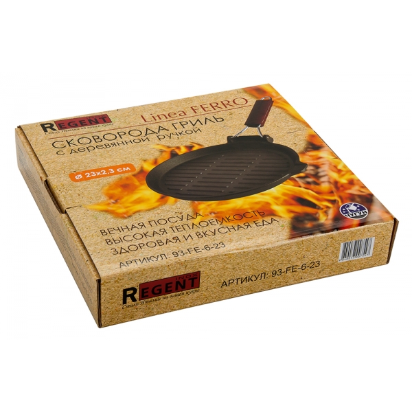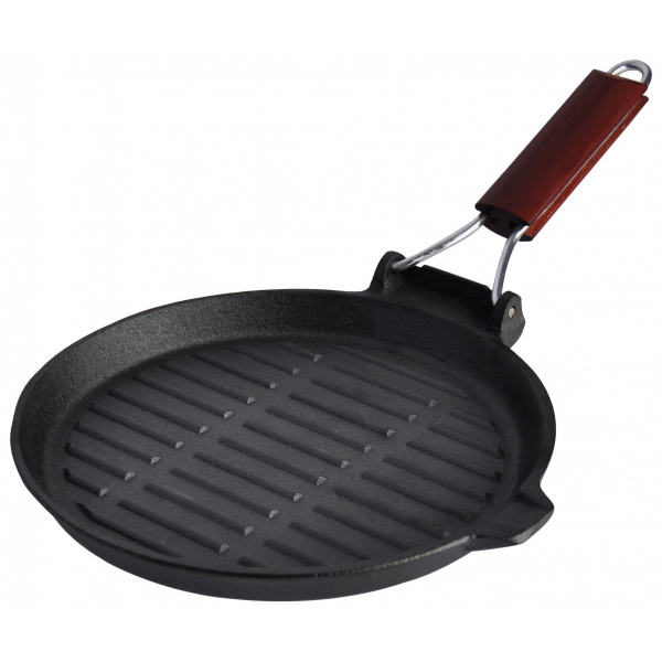 Сковорода гриль линии FERRO. Оснащена деревянной складывающейся ручкой для удобства хранения.