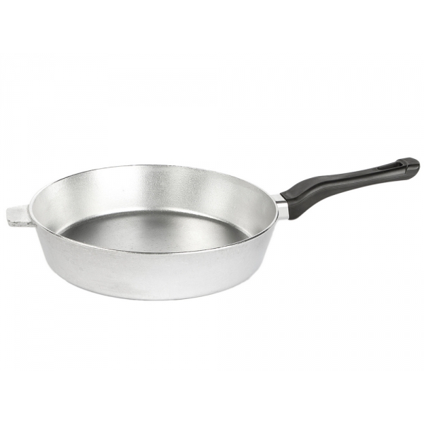 Сковорода универсальная Хозяшка литая алюминиевая с пластиковой несъемной ручкой и утолщенным дном.