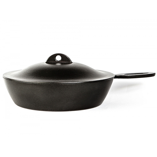 Сковорода Сотейник литая алюминиевая с пластиковой несъемной ручкой, утолщенным дном, крышкой и антипригарным покрытием.