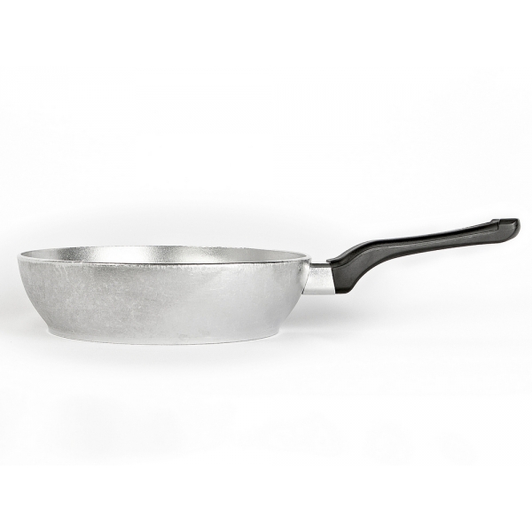 Диаметр - 240 ммОснование - литой алюминий толщиной 4,2 мм.Высота - 55 ммРучка - термостойкий пластик, несъемнаяЦвет - алюминий