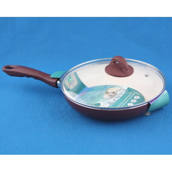 Сковорода Катунь ЖЕМЧУГ с антипригарным керамическим покрытием, с крышкой, характеризуется удобным и практичным дизайном, имеет диаметр 24 см и высоту стенок на уровне 4 см. В качестве основного материала используется алюминий толщиной 2,5 мм. На внутренней стороне представлено качественное керамическое покрытие белого цвета. Керамическое покрытие сковородки обеспечивает прекрасную поддержку температуры и не влияет на пищевые свойства приготавливаемой пищи. Удобная ручка изготовлена из бакелита и характеризуется низкой степенью нагревания