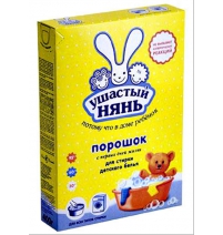 Стиральный порошок "Ушастый нянь" для стирки детского белья, 400г. Предназначен для стирки детских изделий, в том числе новорожденных, из хлопчатобумажных, льняных, синтетических тканей, а также тканей из смешанных волокон (кроме шелка и шерсти), как вручную, так и в автоматических стиральных машинах и машинах активаторного типа. Особенности: может использоваться для стирки в температурных режимах от 30 до 95'C. Синтетическое моющее средство разработано специально для стирки белья и одежды детей любого возраста, в том числе новорожденных. Подходит для стирки одежды людей с чувствительной кожей. Отлично отстирывает с пеленок, подгузников, нагрудников и других детских вещей самые сложные загрязнения пятна от молока, яиц, фруктовых пюре, соков, каш, а также продуктов жизнедеятельности малышей. Входящие в его состав активные добавки и мягкие отбеливатели эффективно удаляют грязь, не повреждая структуру ткани. Обладает цветочно-фруктовым запахом, который делает стирку приятной, но не остается на белье. Средство полностью выполаскивается из ткани, что исключает попадание на кожу ребенка моющих веществ. Безопасен даже для детей, склонных к аллергии.