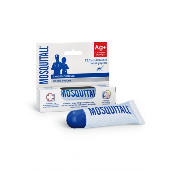 Гель-бальзам MOSQUITALL 10 мл применяется для устранения последствий укусов насекомых. Средство быстро и эффективно снимает ощущение дискомфорта, зуд и раздражение. Гель-бальзам содержит антибактериальный комплекс с ионами серебра, обладает противовоспалительным и регенерирующим действием.- подходит для любого типа кожи