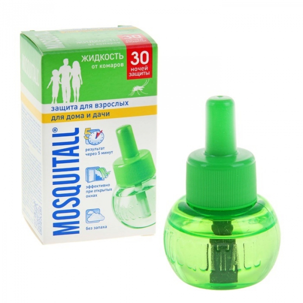 Жидкость MOSQUITALL быстро и надежно уничтожает комаров и других летающих кровососущих насекомых внутри помещения. Жидкость воздействует на насекомых уже через 5 минут после включения электрофумигатора в сеть. Благодаря действующему веществу последнего поколения жидкость безопасна для людей даже при ежедневном использовании.