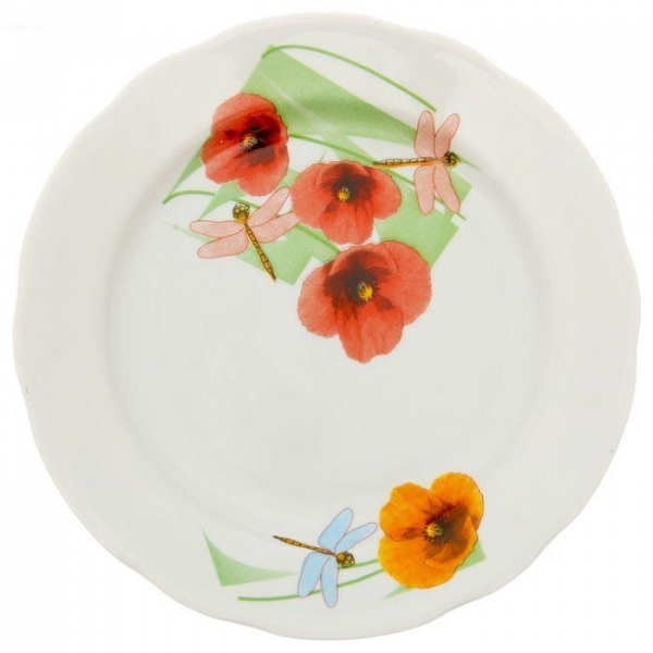Тарелка мелкая диам. 175 мм Вырезной край Июльский мак из высококачественного фарфора с декоративным рисунком.
