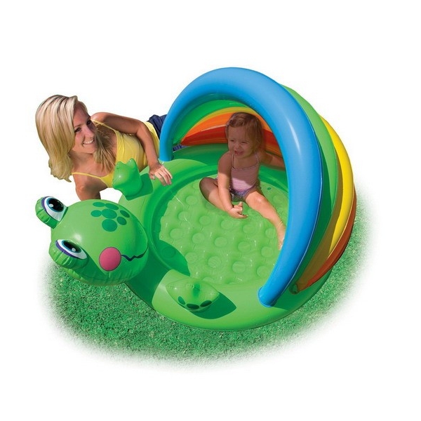 Детский надувной бассейн Intex Лягушонок с тентом идеально подойдет для вашего малыша.