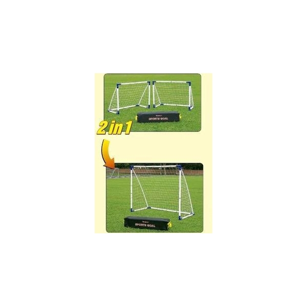 Ворота футбольные трансформер Kih Chuan Industrial Co. арт. JC-429A - это ворота трансформер из которых можно сделать двое небольших ворот размером 122*91,5*61см или одни 183*153*91,5. Ворота футбольные имеют металлические стойки, а сетка изготовлена из высококачественного винила. Ворота легко поместятся в багажник автомобиля и их можно взять в парк, школу или пляж. Вес:20кг.