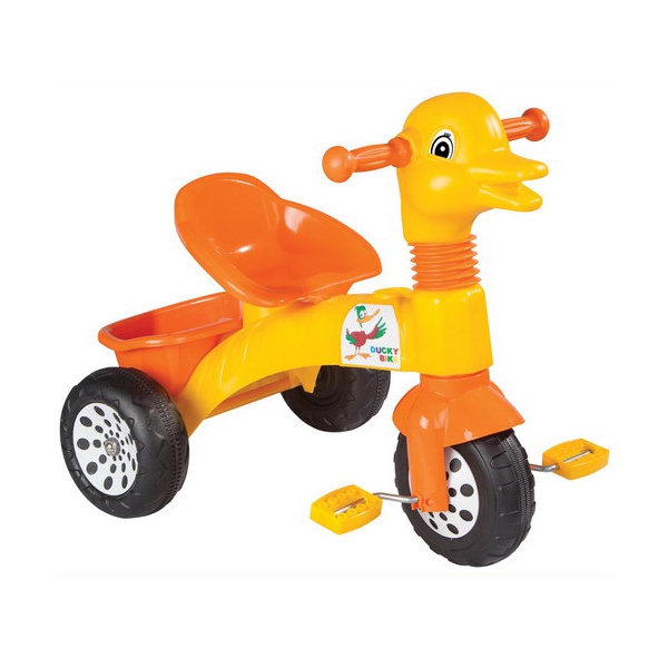 Это устойчивый трехколесный велосипед в форме уточки с педалями.