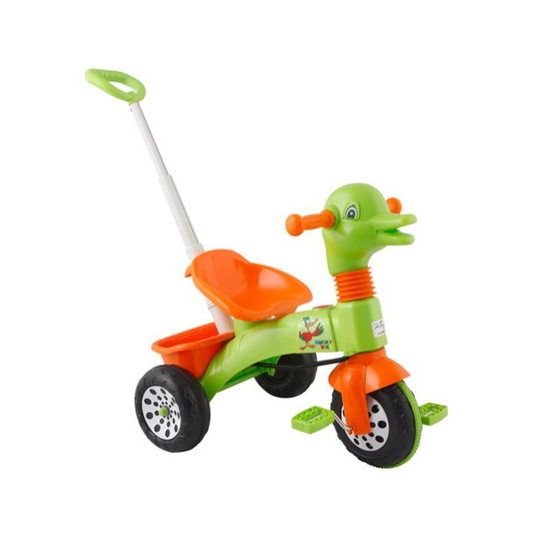 Это устойчивый трехколесный велосипед в форме уточки спедалями.