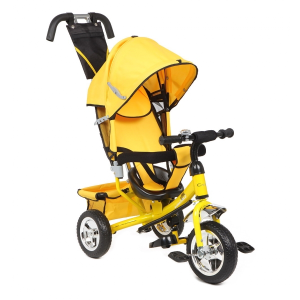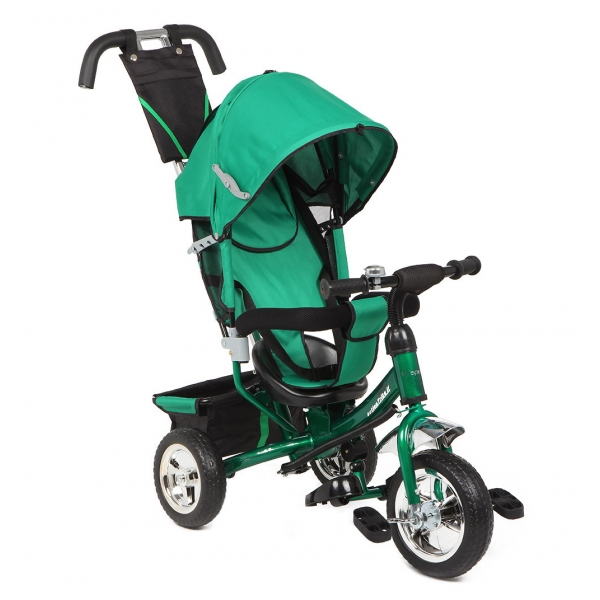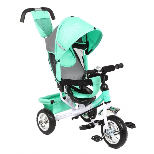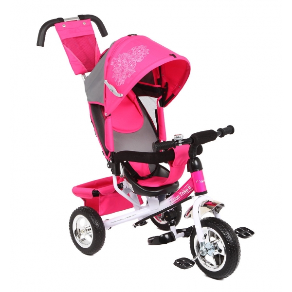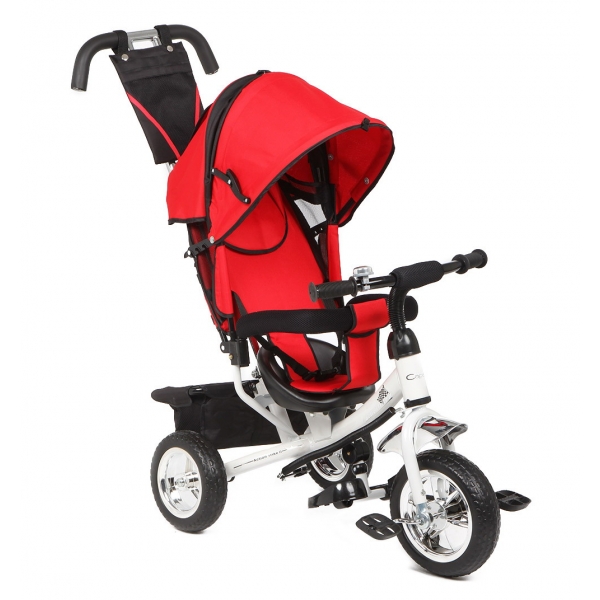 Модель велосипеда спроектирована таким образом, чтобы ребенку было комфортно и безопасно. В этих целях предусмотрен защитный бампер, складной капор, широкое сиденье с мягким вкладышем, нескользящие педали, руль со звонком и подножки. Велосипед едет мягко на дорогах благодаря PU-колесам. Управление движением велосипеда может осуществляться родителями, либо малыш самостоятельно может крутить педали. Имеется корзина для мелочей, в которую можно положить игрушки и прочие вещи.