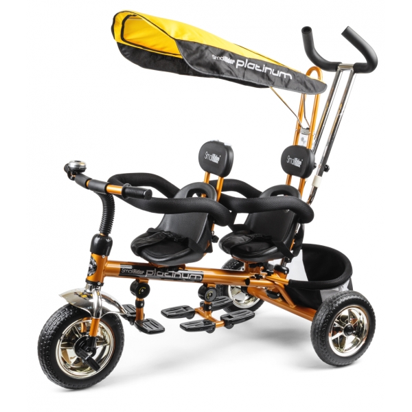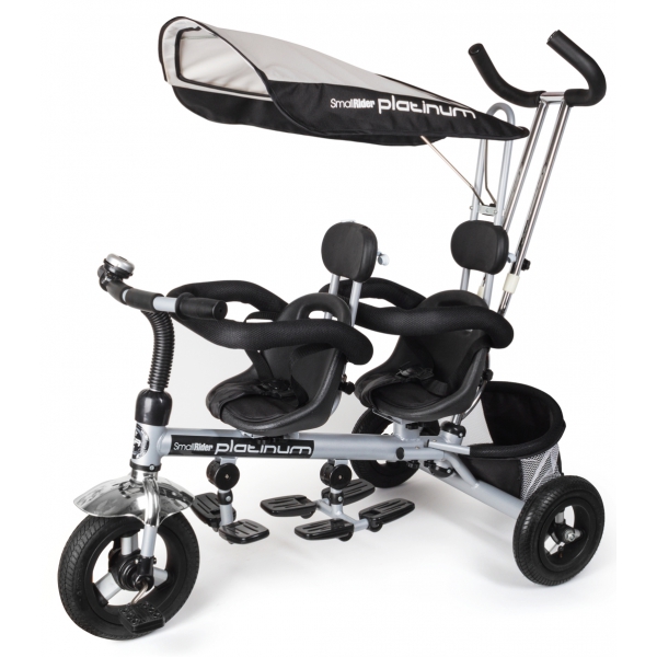 Что очень важно - у самого основания ручка трехколесного велосипеда Small Rider Platinum получила дополнительное усиление в виде дуги и двойной трубки для того, чтобы выдерживать запрыгивания на бордюры с двумя детьми на борту.