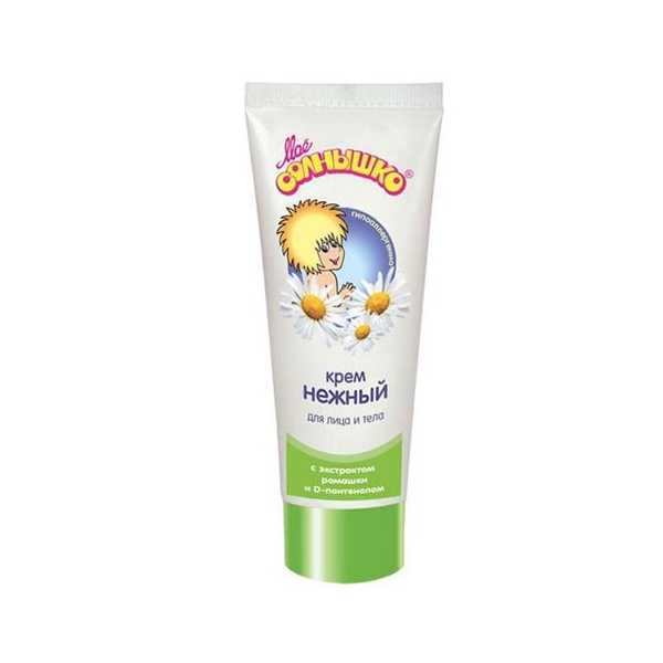Моё солнышко Крем детский нежный 75 мл. Гипоаллергенный состав крема с активными природными компонентами эффективно смягчает, увлажняет и успокаивает нежную детскую кожу, создает дополнительный защитный барьер. Предупреждает и устраняет раздражение и воспаление кожи.