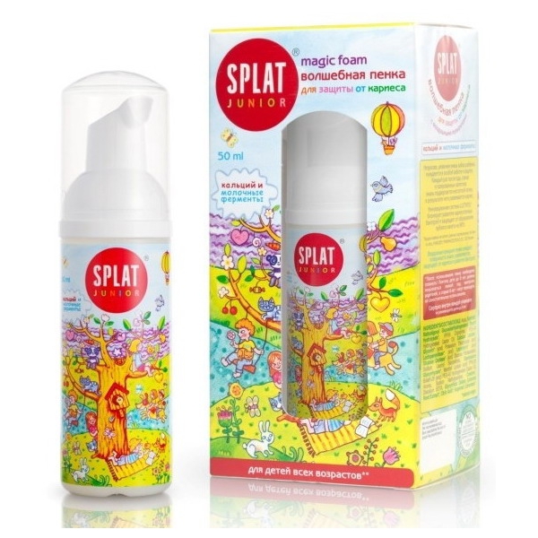 Пенка Splat Junior Magic Foam для полости рта поможет, когда ребенок в поездке, в школе или в детском саду и почистить зубы просто невозможно. Всего два нажатия на диспенсер – и во рту образуется облако ароматной пенки, частички которой проникают даже в самые труднодоступные места, очищая эмаль.