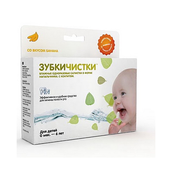 ЗУБКИЧИСТКИ™ от Organic & Natural™ Baby - это влажные одноразовые салфетки в форме напальчника для очищения. С ксилитом и вкусом банана.