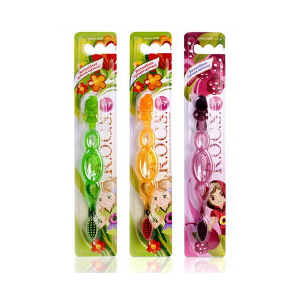 Двухкомпонентная зубная щетка R.O.C.S. Kids для детей от 3 до 7 лет разработана при участии стоматологов.